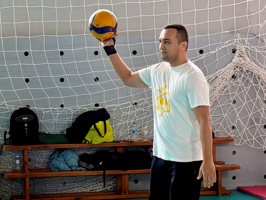 Catch the serve! At the New Tone Gymnasium, regular training games for teachers in pioneerball have resumed
