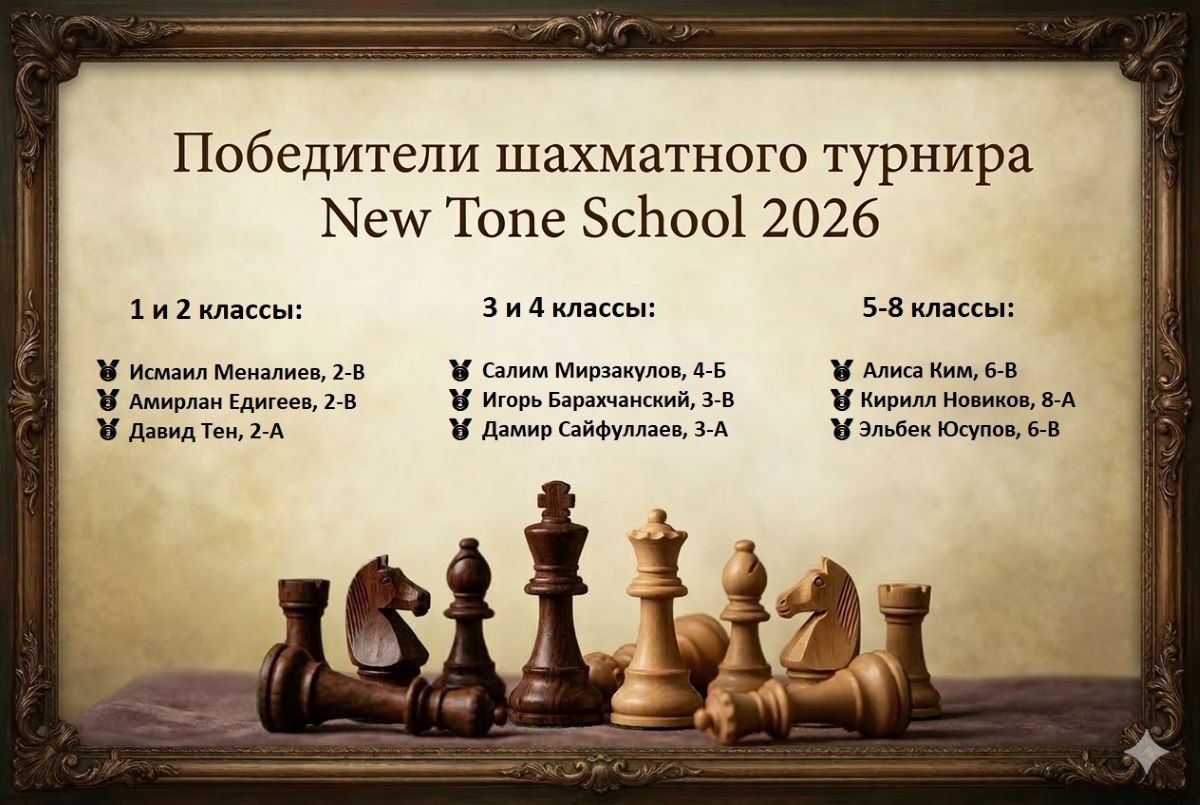 Ежегодный шахматный турнир в Английской гимназии New Tone заново определил сильнейших поклонников древней интеллектуальных игры среди учеников и их родителей. Шахматный марафон снова прошел в несколько этапов: сначала лидеры определялись внутри классов, затем лучшие игроки встречались на уровне параллелей, и лишь самые сильные стратеги и тактики вышли в финал, где развернулась напряженная борьба за первенство.